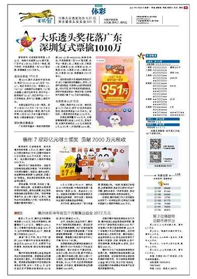 新快报讯 记者陆妍思报道 6月26日,体彩大乐透第21072期开奖,广东中出1注951万多元一等奖,落户深圳,中奖彩票是一张“9+4”复式票,单票擒奖1010万多元。 追加头奖达17