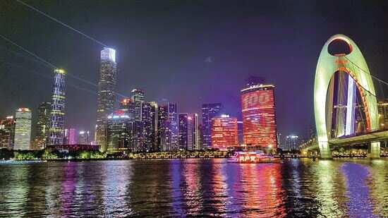 ■海珠广场灯光秀呈现岁月变迁之中的广州。 |