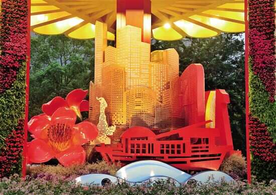 ◀位于花城广场的大型“三面礼物盒”。广州以花城之名,庆建党百年。 |