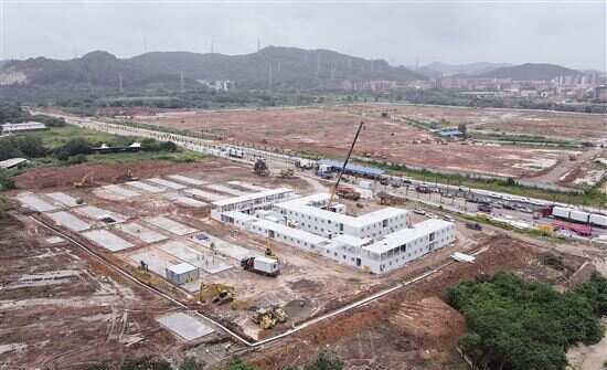 实地探访广州国际健康驿站: 6月28日,广州市政府副秘书长高裕跃透露,拥有5000间客房的广州国际健康驿站正在紧锣密鼓建设中,9月份将投入使用。同日,广州市发改委宣布,该驿站设在白云区。29日,新快报记者探寻发现,两层的项目指挥部已初具雏形,而正式的健康驿站正在平整土地。现场工人告诉记者,四五天前才刚刚开工,为了赶工期,正在24小时轮番施工中。 ■新快报记者 王彤 从白云机场驾车至驿站 需差不多一个钟 资料显示,健康驿站项目位于白云区钟落潭镇 105 国道广从公路段以南,地铁14号线马沥地铁站旁,用地面积约 25.78 万平方米(400亩),总建筑面积约为 25 万平方米。 记者驱车前往发现,其背靠燕子岭,接近流溪河,周围环境优美,植物茂密,空气清新,人烟稀少。驿站西南方,是广东机电职业技术学院,不远处是仲恺农业工程学院白云校区;东南方向,广东工贸职业技术学院白云校区在附近。 公共交通工具方面,仅有地铁可达,暂无公交。地铁站出入口距驿站极近,称得上是“地铁上盖”。从广从公路上下车步行约1分钟,即可到达驿站边界。根据记者的实际体验,若驾车前往,一路上红灯较少,路行顺畅。若在此解除隔离的人士自行离开,无论开车还是坐地铁都十分方便。地图软件显示,从白云机场驾车至此,需要46分钟左右;从广州市第八人民医院(嘉禾院区)出发,驾车至此则需44分钟左右。 指挥部初具雏形 生活区还是一片平地 现场,两条马路将正在施工的场地划分为三块区域:其中马沥村党群服务中心坐落的马路两侧为真正的驿站建社区,其周围设有围蔽。党群服务中心工作人员称,驿站此前的土地归村子所有,后被政府收储用来建设健康驿站。 当日上午,场地上均为黄色的泥土,暂无任何建筑物,多台挖掘机在此驻扎平整土地。第三块场地被一条宽阔的马路隔开,上面已经搭建了约百来套白色长方体“盒子”,共分为上下两层。施工人员称,这是建设单位广州建筑的项目指挥部,并非未来驿站的正式使用区域。 另一位现场施工人员告诉新快报记者,几天前,他们才刚刚来此工作,不久即安装好了指挥部的主体框架,进程很快。这其中,装配式建筑的施工方式功不可没。 所谓装配式建筑,是指把传统建造方式中的大量现场作业工作转移到工厂进行,在工厂上预制四壁、墙顶,然后像搭积木一样拼装房子。去年武汉的火神山、雷神山医院正是采用了此种建筑方式。据悉,广州国际健康驿站的主体也将采用装配式建筑方式进行施工。广州建筑的工作人员介绍,该驿站的装配率可达100%。 按照市发改委此前公布的规划图,整个驿站配有11个生活区,拟按照隔离标准打造5000个独立空间,同时可为后勤服务人员提供 2000 床位。配套方面,驿站配建了大巴轮候及清洗区、车辆洗消区、司机休息室、后勤保障房、综合服务楼、服务中心、洗衣房、厨房及餐饮配送、生活给水及消防给水、污水处理设施及集中垃圾处理间等功能用房,形成一个能够良好消毒的闭环。
