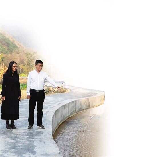 ■杨龙年在翁城镇沾坑村向驻村干部了解村基础设施建设情况。 |