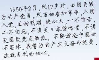 谢 章 ★88岁 ★党龄71年 1933年出生。1950年加入中国共产党。 1944年我加入了新民主主义青年团,积极唱抗日歌曲、演抗日白话剧、为地下党送信等。为的是消灭残暴的日本侵略者。1945年日本投降后,组织上要我去做群众工作,不久又调我去武装部队(先后入列海陆丰人民自卫队,粤赣湘边纵队东江第一支队、主力三团,两广纵队)经过无数次大小战斗,直到1955年初转业到地方工作。 在地方工作38年,我坚信党,忠于党,精神饱满地开展工作,特别在改革开放中,甘当“开荒牛”,在没有资金和办公地方等恶劣条件下,发动群众,克服重重困难开展贸易和研发新产品,在较短时间内取得好效益,出色地完成了各项任务。1987年1月受到省经委表扬并记三等功一次。 杨 群 ★97岁 ★党龄81年 1924年出生。1940年为地下党做革命工作,6月加入中国共产党。1945年参加广东人民抗日游击队韩江纵队。1984年在广州外国语学院离休。 感言:年少家穷求学艰难,庆幸遇上好老师认识党,共产党领导人民翻身获得幸福,我感恩党,要为党为人民奋斗终身。 麦 扬 ★96岁 ★党龄80年 1925年出生。1941年在广东省立文理学院附中加入中国共产党。1944年在惠阳参加东江纵队。1993年在广州市政协离休,国务院颁发老干部离休荣誉证。离休后,在民办教育事业、老人事业等方面做力所能及的工作。 感言:万物生长靠太阳,我成长靠党的培养。永记党恩! 张汉臣 ★92岁 ★党龄73年 1929年12月出生,1948年4月参加揭阳县潮汕人民抗征队。1948年12月参加中国共产党。在南昌陆军学校训练部政治处主任岗位离休。荣立三等功三次。 感言:中国共产党是人民的大救星,也是我的大救星。感谢党对我的培养教育,把我锻炼成一名为人民服务的战士。 张坪华 ★89岁 ★党龄71年 广东梅县人,1932年1月出生,大专文化。1949年4月参军,1950年2月加入中国共产党。1949年4月在闽粤赣边纵一支队四团任政工队员。1950年后先后在兴梅军分区第五团、中南军区暂编27、29团任见习干事。1953年10月转业。1956年调广东省教育厅,后调广东教育学院任党委副书记。1984年调中山一院党委任副书记。1989年7月在中山一院离休。 杨 森 ★90岁 ★党龄72年 1931年出生,1949年1月参加地方部队,同年7月1日加入中国共产党。在部队当卫生员,边学边做,给伤员包扎、吃药、喂饭样样都要做。部队很艰苦,缺医少药,特别是盘尼西林都是地下党弄来的。1949年随南下部队接管揭阳县卫生系统。曾在潮安县、粤北山区等地卫生系统工作,后任韶关钢铁厂医院党委书记。1986年在冶金系统矿山公司离休。 感言:为了推翻三座大山,让人民过上好日子。