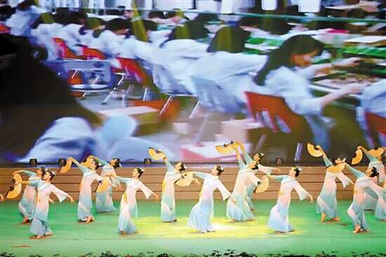 ■2021年6月24日,河南省许昌市举办许昌市庆祝中国共产党成立100周年主题晚会,演员在晚会上表演舞蹈《春天的故事》。(VCG图) |