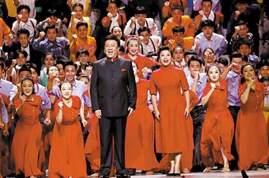 ■2019年9月29日晚,文艺晚会《奋斗吧 中华儿女》在北京人民大会堂举行。张也、吕继宏演唱《走进新时代》。(VCG图) |
