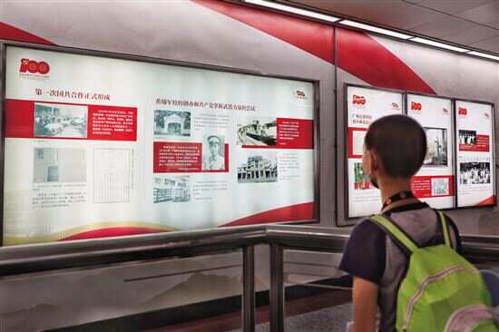■在地铁农讲所站,乘客可以在日常出行中“零距离”学党史。 |