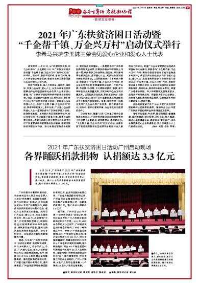 2021年广东扶贫济困日活动暨“千企帮千镇、万企兴万村”启动仪式举行