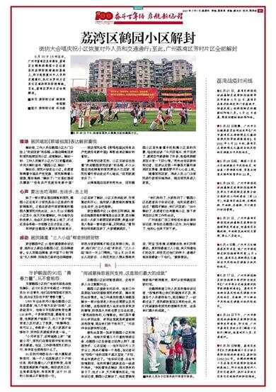 街坊大合唱庆祝小区恢复对外人员和交通通行;至此,广州荔湾区芳村片区全部解封 6月30日18时左右,广州市荔湾区发布通告,荔湾区白鹤洞街鹤园小区在落实好疫情防控措施的基础上,即日起恢复对外人
