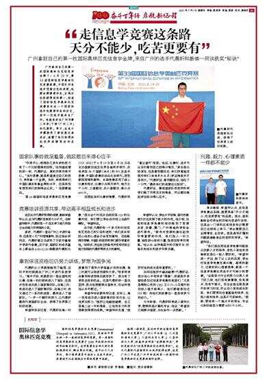 广州拿到自己的第一枚国际奥林匹克信息学金牌,来自广州的选手代晨昕和教练一同谈获奖“秘诀” 广州拿到自己的第一枚国际奥林匹克信息学金牌了!6月28日,第33届国际信息学奥林匹克竞赛落幕,中国