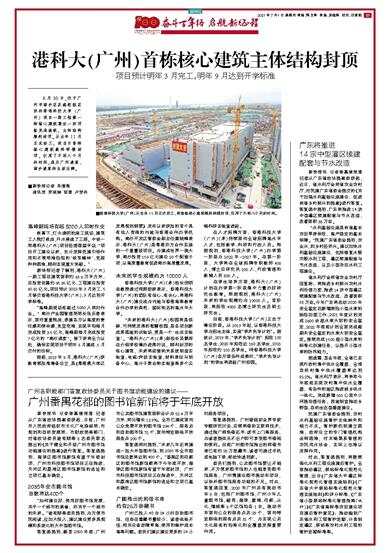 项目预计明年3月完工,明年9月达到开学标准 6月30日,位于广州市南沙区庆盛枢纽区块的香港科技大学(广州)项目一期工程第一栋核心建筑最后一块顶板完成浇筑,主体结构顺利封顶。从去年11月正式