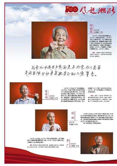 邹佩莲 ★94岁 ★党龄77年 1927年5月在东莞凤岗镇出生。1944年1月参加东江纵队。1944年3月加入中国共产党。1946年随东江纵队北撤到山东,随着部队改编入列两广纵
