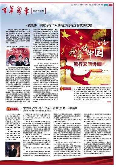 《我爱你,中国》:有华人的地方就有这首歌的歌唱 《我爱你,中国》是珠江电影制片厂经典爱国电影《海外赤子》插曲。影片1979年上映,它诞生于广东,讲述着广东特有的侨乡背景的故事。20世纪80