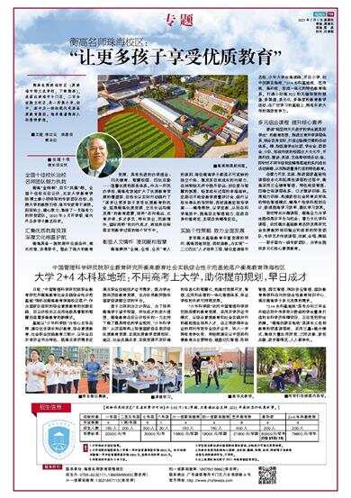 中国管理科学研究院职业教育研究所衡高教育社会实践综合性示范基地落户衡高教育珠海校区 日前,“中国管理科学研究院职业教育研究所衡高教育社会实践综合性示范基地”悄然在衡高教育珠海校区落户,作为