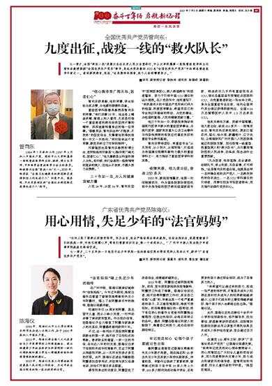 广东省优秀共产党员陈海仪: “任何人犯了罪都必须接受惩罚。作为法官,我会严格依照法律来裁判。但依法判决后,我愿意像孩子们的妈妈一样,听他们袒露心声,帮他们重新回归社会,做一个有用的人。”