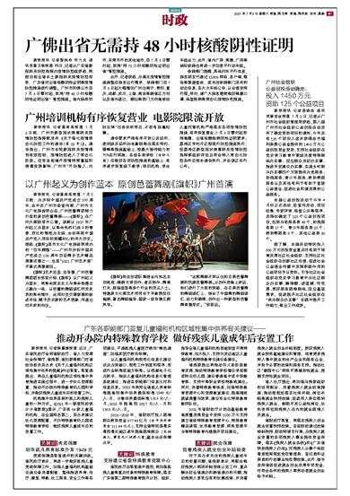 新快报讯 记者黎秋玲 许力夫 通讯员粤卫信报道 昨日,记者从广东省新冠肺炎防控指挥办疫情防控组获悉,根据目前全省本土新冠肺炎疫情防控形势,广东省对出省核酸阴性证明等疫情防控措施进行调整。广州市和