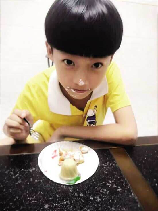▲ 去年六一,生病前的宇翔吃着邻居送的蛋糕,非常开心。 |