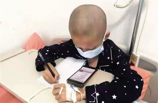 ▲治疗期间,宇翔也不忘完成老师布置的学习小任务。 |