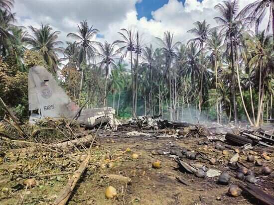 已致42名士兵和地面3名平民遇难 据新华社电 菲律宾国防部4日说,菲军方一架运输机坠毁导致45人死亡,49人正在医院接受治疗,仍有5名士兵下落不明。国防部说,丧生者是军机所载42名士兵和坠毁时地面3名平民。 这架美国制造的C-130型运输机4日上午从菲律宾棉兰老岛卡加延-德奥罗市起飞,运送士兵赴所属部队执行反恐任务,准备在苏禄省霍洛岛降落时坠毁起火。霍洛岛位于菲律宾南部,是极端组织“阿布沙耶夫”武装据点之一。事发时,机上有96人,包括3名飞行员和5名机组人员。 据报道,美国政府今年向菲律宾交付两架菲方购买的美军退役C-130运输机,这次坠毁的是其中一架。