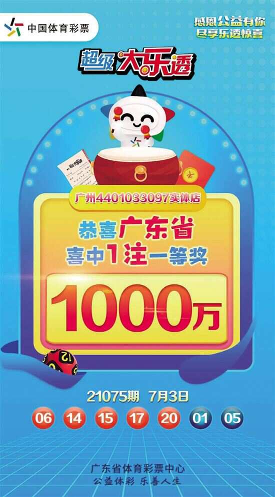 新快报讯 记者陆妍思报道 7月3日,超级大乐透第21075期开奖,当期全国共开出2注1000万元基本投注一等奖,广东摘得其一,落户广州东晓南路。 超级大乐透第21075期的中奖号码为:前区“06、14、15、17、20”;后区 “01、05”。前区号码大小比1∶4,奇偶比2∶3,“14”“20”已经连续3期携手开出,“06”则为遗漏12期开出的冷号,同时开出一组连号“14、15”;后区开出双小双奇组合,其中“05”为遗漏12期开出的冷号。 本期全国共开出2注基本投注一等奖,单注奖金为1000万元,分落广东广州、江西景德镇。广州的基本一等奖花落东晓南路晓南一街2号的4401033097体彩实体店,中奖的彩票是一张10元5注单式票。 追加投注是大乐透独有的投注方式,在2元基本投注的基础上,多花1元进行追加投注,可多得80%的浮动奖奖金。由于未采用追加投注,广州这位中奖者在单注一等奖方面,少拿了800万元追加奖金,从而无缘单注1800万元追加封顶一等奖。 同期二等奖中出51注,每注奖金29.41万余元;其中22注采用追加投注,每注多得奖金23.52万余元。追加后,二等奖单注总奖金52.93万元。 当期全国销量为3.06亿元,为国家筹集彩票公益金1.10亿元。奖池方面,本期开奖结束后,7.52亿元滚存至7月5日(周一)开奖的第21076期。
