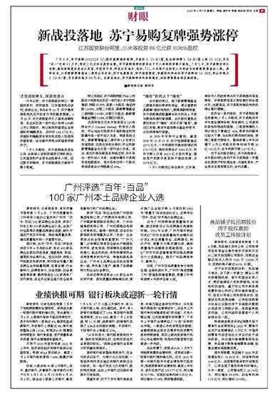 新快报讯 记者陆妍思 通讯员穗市监报道 7月6日,广州市质量强市工作领导小组办公室发布广州市“百年·百品”100家品牌企业名单,来自广州本土的100家品牌企业入选。这是广州全面展示质量品牌建设成