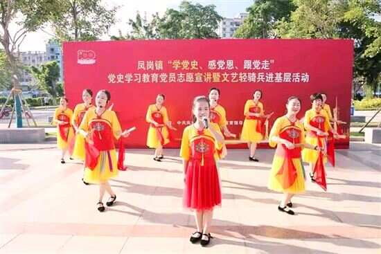 新快报讯 山歌随处唱、故事家门讲、舞蹈车间跳……7月5日,凤岗镇正式启动“艺心向党”文艺轻骑兵进基层活动。广大文艺工作者走出小舞台、走进大天地,结合新时代文明实践活动,深入推动党史学习教育。 “艺心向党”文艺轻骑兵进基层首场活动在凤岗镇体育广场举行。歌曲《唱支山歌给党听》、快板《喜庆建党一百周年》、舞蹈《山歌点赞共产党》等多个精彩节目轮番上阵,引来市民阵阵掌声。活动中,文艺轻骑兵还化身党史学习教育的宣传员、引导员,通过有奖问答等方式,让党史学习教育在群众中不断深化。 “这样的形式很好,很接地气,他们来到我们身边表演节目,大家都很欢迎,这样的氛围也让我们受到教育,我们也会更加爱党、爱国家、爱人民。”企业员工梁先生在看到文艺轻骑兵表演后说道。 今年以来,凤岗镇紧紧围绕庆祝建党100周年主线,融入党史学习教育内容,坚持“以精品奉献人民,用明德引领风尚”,组织成立“艺心向党”文艺轻骑兵,创作推出一批优秀红色文艺精品。从7月5日至7月17日,这一支支“文艺轻骑兵”将陆续走进农村、工业区、社区、企业、学校等人流密集地,将舞台搭到基层,将演出送到百姓家门口,满足不同群体多层次、个性化、差异化的文化需求。通过活动凝聚人心,让更多的市民群众坚定信仰,感党恩、听党话、跟党走。(田晓霞)
