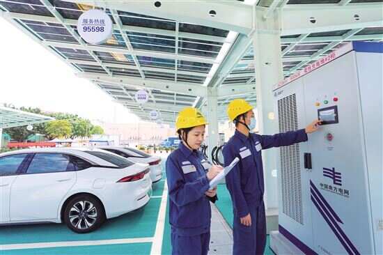 ■东莞供电局工作人员在巷尾站为电动汽车充电站进行检查。顾萱/摄 |