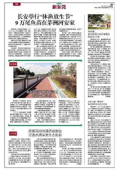 新快报讯 记者杨英杰报道 7月7日上午,2021年长安镇第十三届“休渔放生节”主题活动在茅洲河5号亲水平台举行。这也是长安连续三年在茅洲河畔举行休渔放生活动,为水清岸绿的茅洲河锦上添花,共建生态