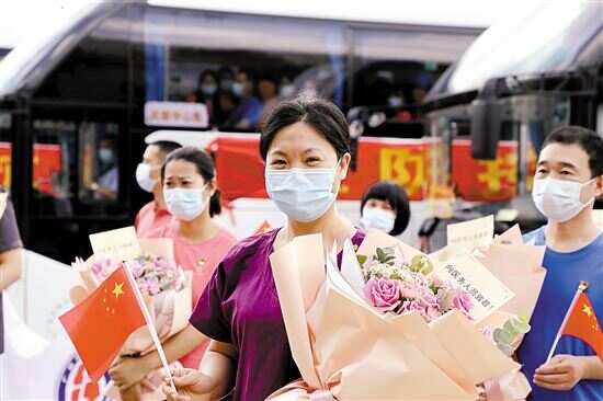 ■9日,奋战在一线救治新冠患者的医护们,悉数脱下防护服,撤离广州市八医院,完成14天休整后,他们将与亲友重聚。新快报记者 林里/摄