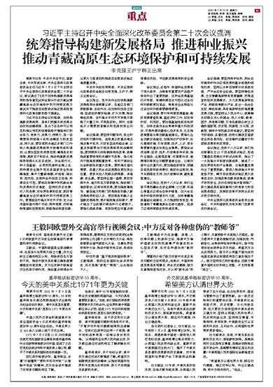 统筹指导构建新发展格局 推进种业振兴 推动青藏高原生态环境保护和可持续发展