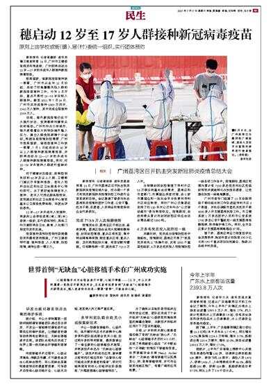 原则上由学校或街(镇)、居(村)委统一组织,实行团体预约 新快报讯 记者高镛舒 通讯员 穗卫建宣报道 16日,广州市卫健委官网发布消息称,广州即将启动为12岁—17岁的未成年人群接种新冠病