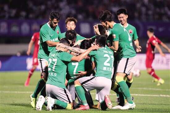 ■今年4月,中超本赛季首轮比赛,深圳庆祝进球。(VCG图) |