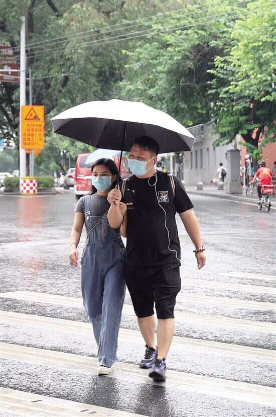 ■7月20日下午,受台风“查帕卡”影响,广州下起雨,行人打着伞出行。 新快报见习记者 吴惠霞/摄 |
