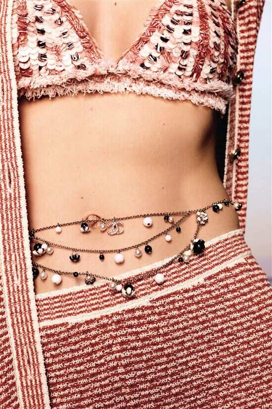 ▲粗链条简洁百搭,挂在腰腹最细的位置,对比下实力显瘦。 |