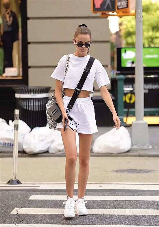▲梨形身材者适宜用短款背心+刚好遮肉的运动风短裤,“雕塑”出美好身段。 |