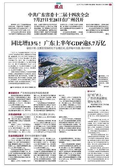省统计局:主要宏观指标处于合理区间,经济稳中加固、稳中向好 7月21日,广东省统计局发布了2021年上半年广东经济运行简况。根据地区生产总值统一核算结果,2021年上半年广东地区生产总值为