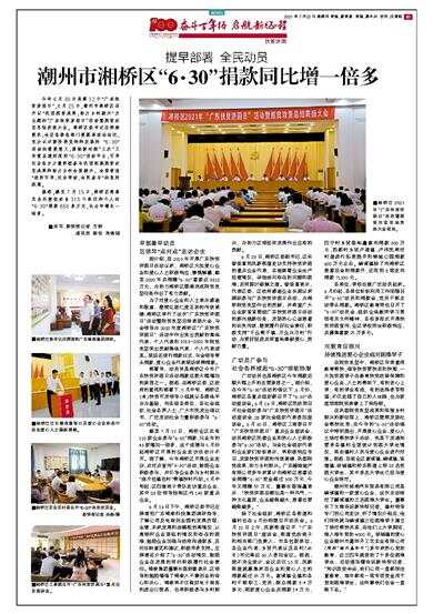 潮州市湘桥区“6·30”捐款同比增一倍多