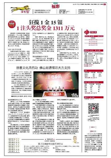 狂揽1金15银 1注头奖总奖金1311万元