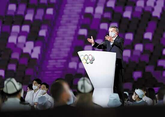 ■国际奥委会主席巴赫在开幕式上致辞。 |