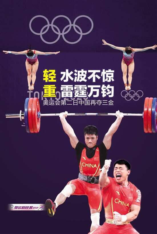 ■25日,东京奥运会进入第二个比赛日,中国选手施廷懋/王涵夺得跳水女子双人三米跳板冠军。李发彬、谌利军则分别在举重男子61公斤级、67公斤级决赛中拼得金牌。新华社发 |