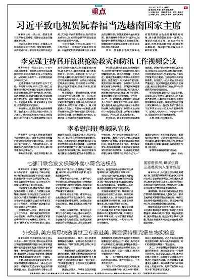 据新华社电 7月26日上午,中共中央政治局常委、国务院总理李克强在国家防汛抗旱总指挥部主持召开视频会议,研究做好当前和下一步抗洪抢险救灾和防汛工作。 应急管理部代表国家防总作了汇报。李克强
