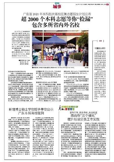 广东省2021年本科批次高校征集志愿招生计划公布 26日下午,广东省教育考试院《关于做好广东省2021年本科批次院校征集志愿和网上录取工作的通知》,记者梳理发现,广东省2021年本科批次高