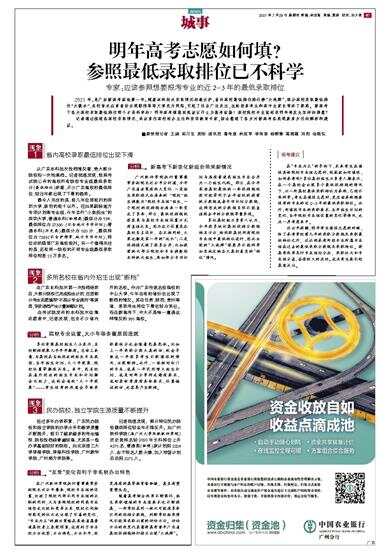 专家:应该参照想要报考专业的近2-3年的最低录取排位 2021年,是广东新高考落地第一年。随着本科批次录取情况相继出炉,省内高校最低排位排行榜“大洗牌”、部分高校录取最低排位“大跳水”、名校首次在多省份出现断档等等文章充斥网络,引起了社会广泛关注,也给很多考生和高中生家长带来了疑惑。新高考下各大高校录取最低排位哪个才是科学的?明年高考填报到底该以什么为报考依据?高校院校专业组招录明年将发生怎样的调整? 记者通过梳理各高校录取情况、采访多位高校招办主任和资深教育专家,综合整理了各方对新高考各类现象多方位的解析和建议。 ■新快报记者 王娟 实习生 周彤 通讯员 粤考宣 林延军 李伟苗 杨柳青 蒋晓薇 刘阳 佘晓仪 现象1 省内高校录取最低排位出现下滑 从广东本科批次投档情况看,绝大部分院校均一次性满档。记者梳理发现,按照考试院公布的高校所有院校专业组最低录取分(最低排位)来看,不少广东高校的最低排位,较往年都出现了下滑的趋势。 最令人关注的是,前几年位居前列的深圳大学,跌到的前十以外。但如果剔除地方专项计划等专业组,今年实行“小类招生”的深圳大学,普通本科(物理类)最低分为594,最低排位为27380(不含地方专项计划);普通本科(历史类)最低分为580分 ,最低排位为7288(不含护理学、地方专项计划),排位依然稳居广东高校前列。另一个值得关注的是,还有同一院校的不同专业组最低录取排位相差10万多名。 分析 新高考下新变化新组合带来新情况 广州软件学院执行董事兼常务副院长迟云平分析道,今年广东省政策有两大变化:一是招生录取模式由原来的“院校”招生调整为“院校专业组”招生,一个院校的投档线由原来一条变成了多条,那么,最低投档线就很容易与高校专业组设置方式有直接关系。因为这个设置是各高校自主设计,各不相同的,大家也都是第一年的“试水”;二是投档模式做了很多合并,比如提前批次部分院校和专业调整到本科批次招生,再如部分专项计划与原有普通类招生专业合并为一个招生代码。那么,在今年某些高校最低的一条投档线就很可能等同于去年该校的提前批分数线或者专项计划分数线,这样形成的分数线自然不能直接跟去年的分数线等量齐观。 多位高校招办负责人认为,今年很多统计高校投档分数线排名方法,依然取高校所有院校专业组中最低排位进行,因此出现的“大洗牌”现象并不能科学如实地反映各大高校真实的“排位”情况。 现象2 多所名校在省内外招生出现“断档” 在广东本科批次第一次投档结束后,大部分院校已完成招生计划,但因部分考生志愿填报“不服从专业调剂”等原因,导致退档产生少量缺额计划。 在考试院发布的本科批次征集志愿表中,记者发现,包含不少省内外的名校。作为广东传统名校强校的中山大学,今年在有的省份也出现了断档的情况。其在甘肃、陕西、贵州等省,录取考生排位下滑也较为突出。而在新高考下,中大不是唯一遭遇这样情况的985高校。 分析 院校专业设置、大小年等多重原因造就 多位资深高校招生人士表示,名校断档现象几乎年年都有。总体上来看,与高校在当地投放的招生专业类型、当年招生计划、大小年现象、院校位置等都有关系。其中,因名校在省外投放的招生专业和计划都会比较少,这就会造就“大小年现象”——考生报考的热度会导致录取最低分也会随着忽高忽低。比如上一年录取分数太高的话,就会导致这一年很多考生不敢填报的情况,出现断档。此外,一些相对冷门的专业,或某一年突然增大招生计划、或是对部分学科成绩有要求、或对身体素质有具体要求、位置偏远的话,也容易产生断档。 现象3 民办院校、独立学院生源质量不断提升 经过多年办学积累,广东民办院校和独立学院的办学水平和教学质量不断提升,吸引了越来越多的考生填报,院校投档线普遍较高,尤其是一些办学基础较好的院校。如北京理工大学珠海学院、珠海科技学院、广州新华学院、广州南方学院等。 记者梳理发现,部分转设民办院校最低排位较去年不降反升。如广州软件学院(原广州大学华软软件学院)历史类排名较2020年文科排位上升4275名,普通类(物理)原计划招2224人,由于报名人数火爆,加入预留计划后共招2271人。 分析 “反常”变化有利于非名校办出特色 在广州软件学院执行董事兼常务副院长迟云平看来,院校专业组的设置,打破了院校内部不同专业组的关联的同时,又与其他院校的同类专业组形成比较和竞争关系,院校之间相对固定的位次也出现了可喜的变化,“专业为王”的胜出策略在某些省属普通高校身上表现明显,这有利于非名校办出优势,办出特色,办出水平,改变原有的高等教育食物链,甚至有望重塑生态。 随着高考综合改革不断深化,招生录取领域的专业度要求也不断提高,一所学校在同一批次可能有多条不同的投档分数线,判断学校招录情况不能再采取以前的评估方法。评估方法的改变代表着新高考首年广东省高校投档线排行榜正出现“大洗牌”。 报考建议 在“专业为王”的导向下,未来考生在填报具体院校专业组志愿时,到底该如何填报,如何参考呢?多位高校招生办负责人都表示,在一个高校会出现多个最低投档线的情况下,以一所高校最低录取排位为参照,已经不再科学。考生在填报志愿