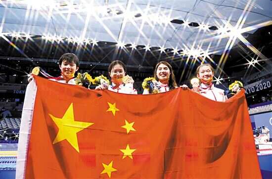 女子4×200米自由泳接力,中国四朵金花打破世界纪录夺冠 据新华社电 女子4×200米自由泳接力冠军,原本被锁定为澳大利亚的囊中之物。四位名字中有水的中国“水姑娘”杨浚瑄、汤慕涵、张雨霏和李冰洁却迸发出强大能量,以7分40秒33的成绩夺得“看似不可能”的金牌,改写由澳大利亚和美国队保持的世界纪录和奥运会纪录。 过去六届奥运会女子4×200米自由泳接力比赛,都是美国和澳大利亚分享胜利。按照正常实力分析,中国队可以冲击铜牌。然而,竞技体育的赛场不相信纸面数据,只有硬碰硬的实力对抗才是真章。中国游泳教练组彻夜研究出来的接力阵容让中国力量得以全部释放。 杨浚瑄 “因为我是第一棒,需要给队友创造比较大的优势,这样她们可以更好游一点,所以比赛中我全力去拼。” 汤慕涵 “杨浚瑄第一棒游得那么好,我下水的时候就想‘不能拖后腿’,毕竟我的能力、经验都没有大家好,我一定要稳住,我也没想到,最后50米我真的冲上去了。” 张雨霏 “早上她们三个人看到我,没有一个人跟我提接力的事情,李冰洁还冲我做了一个加油的手势,我心里想,200蝶,加油吧。” 李冰洁 “在检录室的时候,看到霏姐升国旗奏国歌,我的眼泪都出来了,斗志一下就激发出来了,接力拼了!”