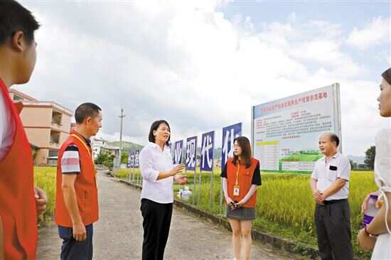 ■中心工作人员到七拱镇隔坑村广东省农业生产社会化服务生产托管示范基地调研交流。 |