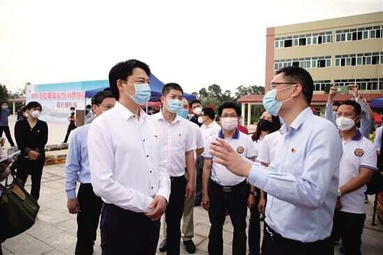 ■2020年在阳西县消费扶贫现场会上,阳西农行党委书记、行长赵汝升向阳江市委常委、阳西县委书记孙波汇报阳西农行消费扶贫情况。 |