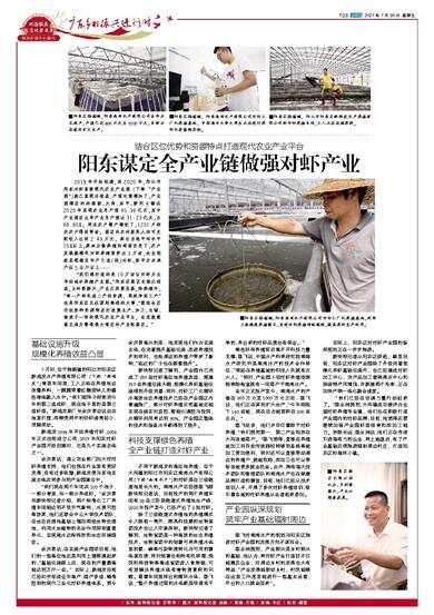 结合区位优势和资源特点打造现代农业产业平台 2019年开始创建,到2020年,阳江市阳东对虾省级现代农业产业园(下称“产业园”)就已显现出效益:产值比重增加了,产业园辖区内的雅韶、大沟、东