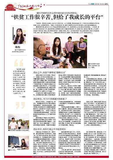 潮州市湘桥区农业农村局四级主任科员陈怡: “我觉得,脱贫攻坚的圆满收官,这不仅是全体扶贫干部的努力,背后还有广大扶贫干部家属们的充分理解和默默付出。正是他们挑起了家庭重担,解决了后顾之忧,