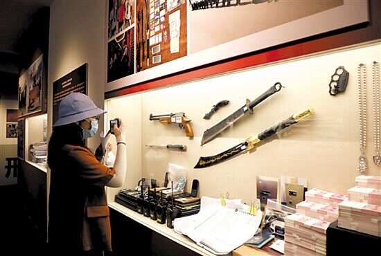 ■“广东公安八大专项行动”成果展上展出的警方缴获的作案工具。 新快报记者 孙毅/摄 |