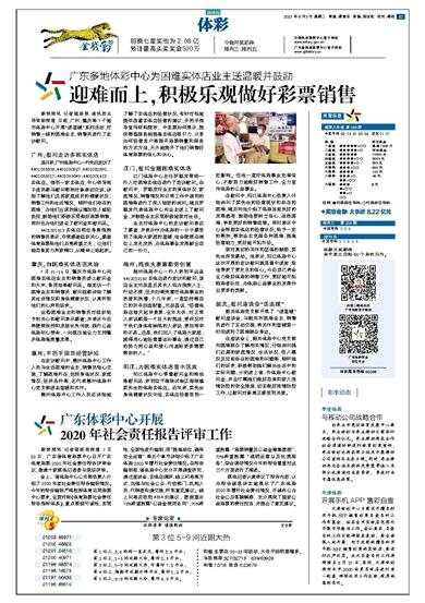 新快报讯 记者陆妍思报道 7月29日,广东省体育彩票中心召开广东体育彩票2020年社会责任报告评审会议,邀请十家媒体记者参与现场评审。 会上,省体彩中心公关部负责人介绍了2020年度社会责