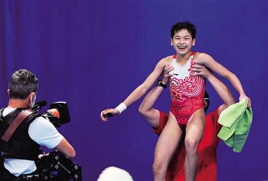 ■昨日,在东京奥运会跳水女子10米跳台决赛中,中国选手全红婵夺得冠军,陈芋汐获得亚军。全红婵来自广东湛江,年仅14岁,是整个中国代表团中年龄最小的队员。新华社发