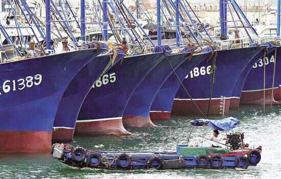 ■8月4日,停泊在漳州市龙海区港尾镇斗美渔港的渔船。新华社发 |